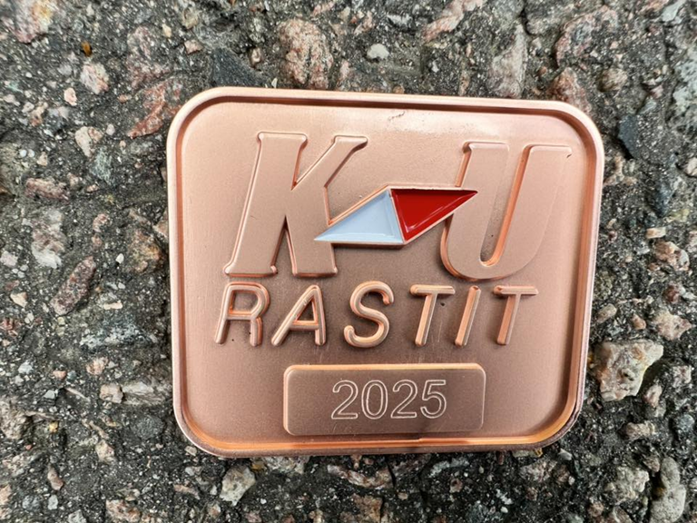 Vuoden 2025 KU-rastimitali on kuitattavissa tapahtumapaikalla. Mitalin saa viidestätoista (15) osallistumisesta KU-rasteille, omatoimirastit ml. Mitalin saa esittämällä koosteen kertyneistä suorituksista. Saajista kirjataan nimi ja puhelinnumero.